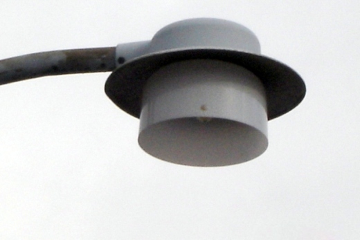 Hattelampen er et eksempel på et dårligt armatur. Dels sender det lys ud over det vandrette plan. Dels giver det meget lidt lys ned på vejen. Fot.: P.T.Aldrich.