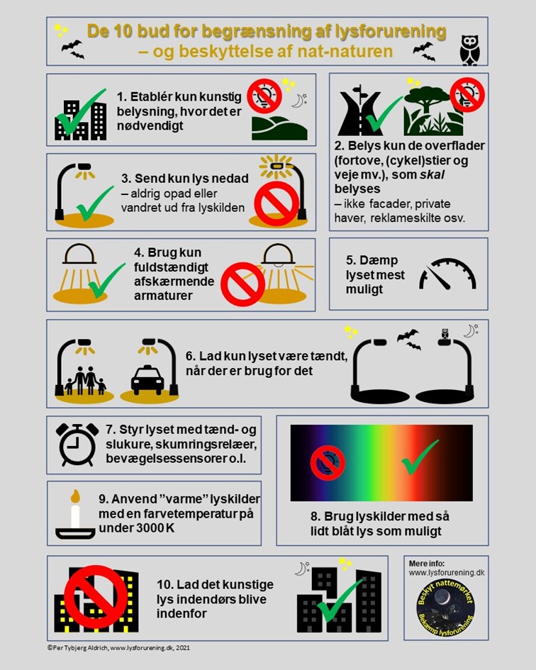 Lidt mere udførligt beskrevet bekæmpes lysforurening ved: